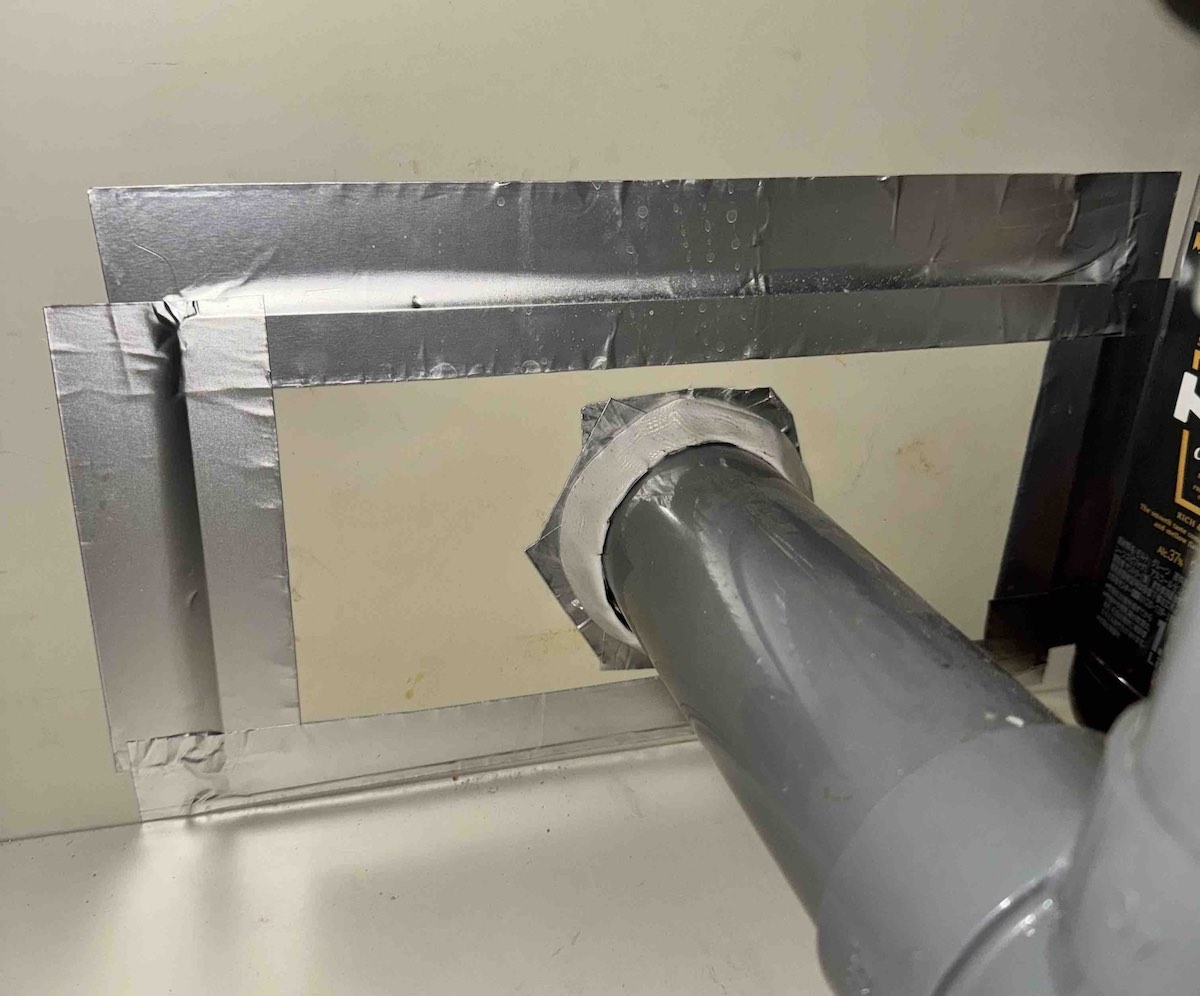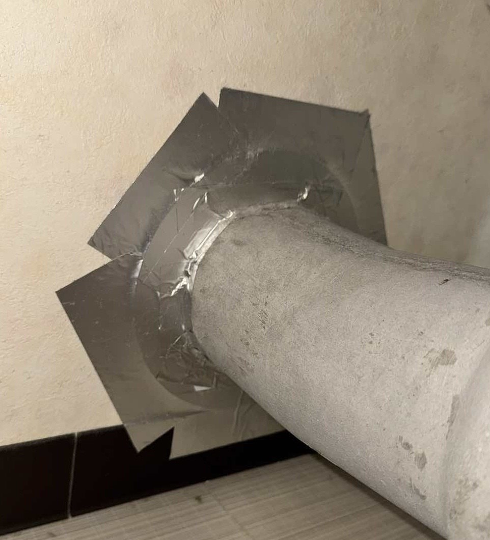 テープとパテで塞いでいます。
